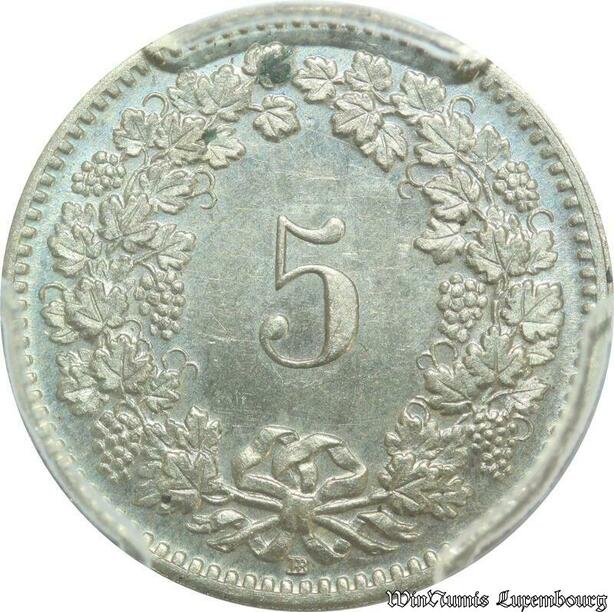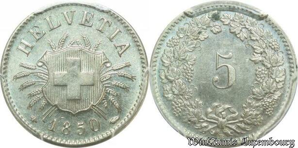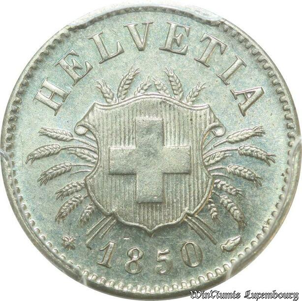 S1097 Rare Switzerland Swiss 5 Rappen 1850 BB Strasbourg PCGS MS64 Silver