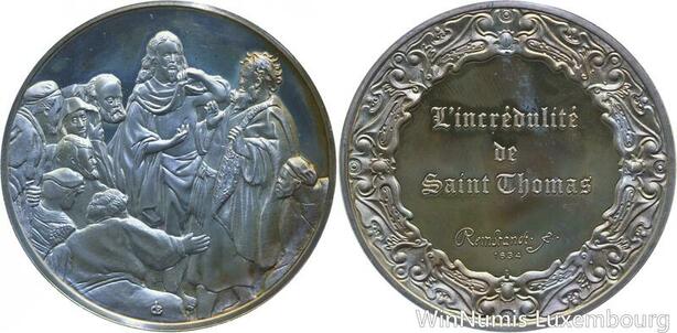 S1229 Médaille l'Incrédulité de Saint Thomas Rembrandt 1634 Silver Proof > Offer