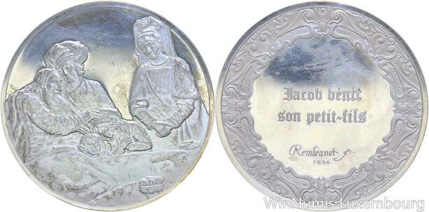 S1263 Médaille Jacob bénit son petit-fils Rembrandt 1656 Silver Argent Proof
