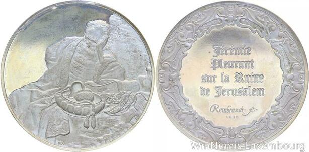 S1264 Médaille Jérémie Ruine de Jerusalem Rembrandt 1630 Silver 950/1000 Proof
