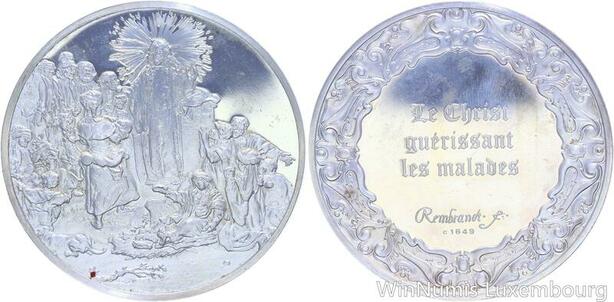 S1273 Médaille Le Christ guérissant les malades Rembrandt 1649 Argent Silver UNC