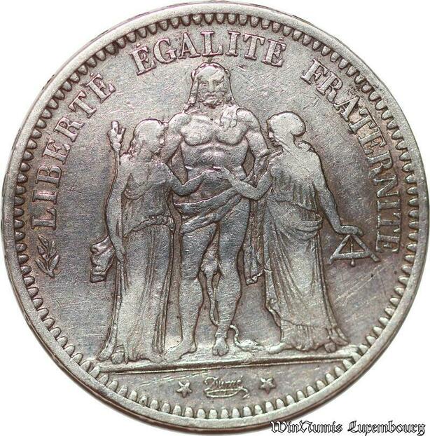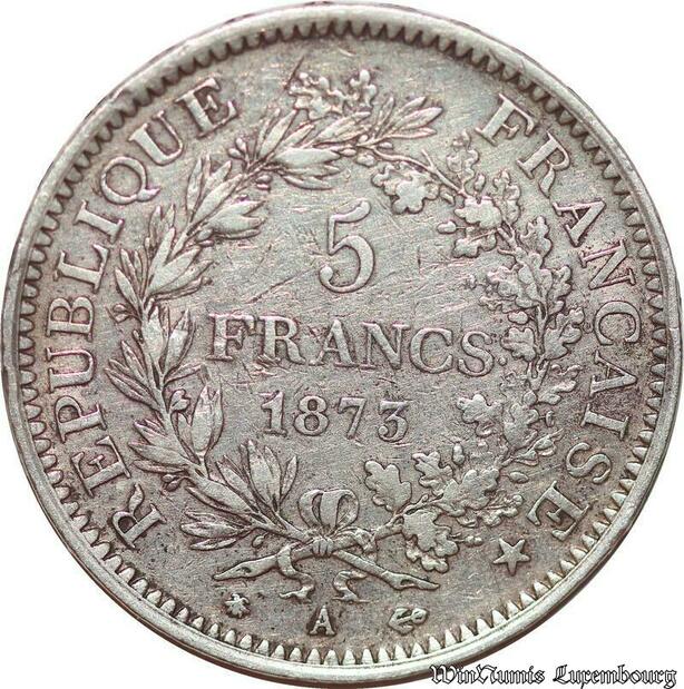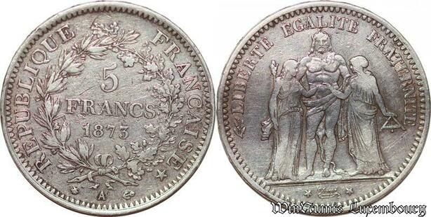 S1681 France 5 Francs Hercule Dupré 1873 A Paris Argent Silver -> Make Offer