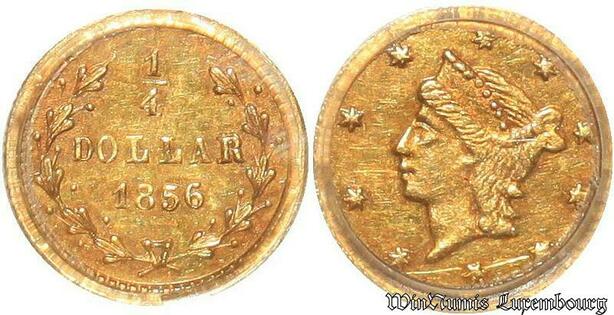 S4560 Top Rarity 8-10 Survival USA California 1/4 Dollar Or Gold 1856 PCGS AU