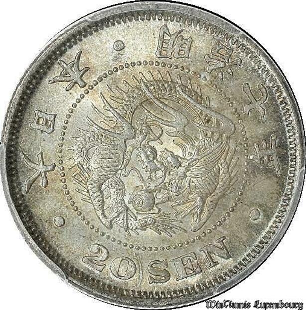S4564 Finest! Japon 20 Sen 1874 PCGS MS66 Silver - Make offer