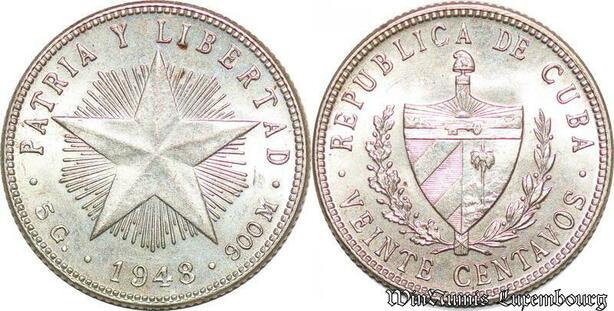 S5170 Cuba Veinte 20 Centavos 1948 UNC MS ! Argent Silver - Faire Offre