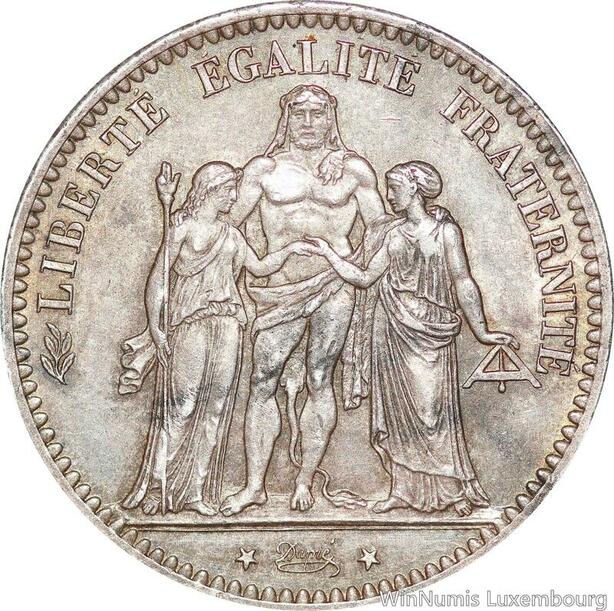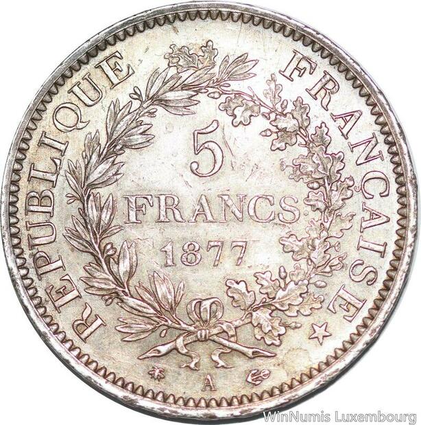 S5459 France 5 Francs Hercule 1877 Superbe Argent - Faire Offre