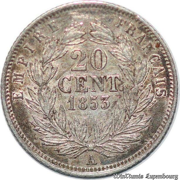 S5491 20 Centimes Napoléon I 1853 A Paris Argent Silver TTB + - Faire Offre