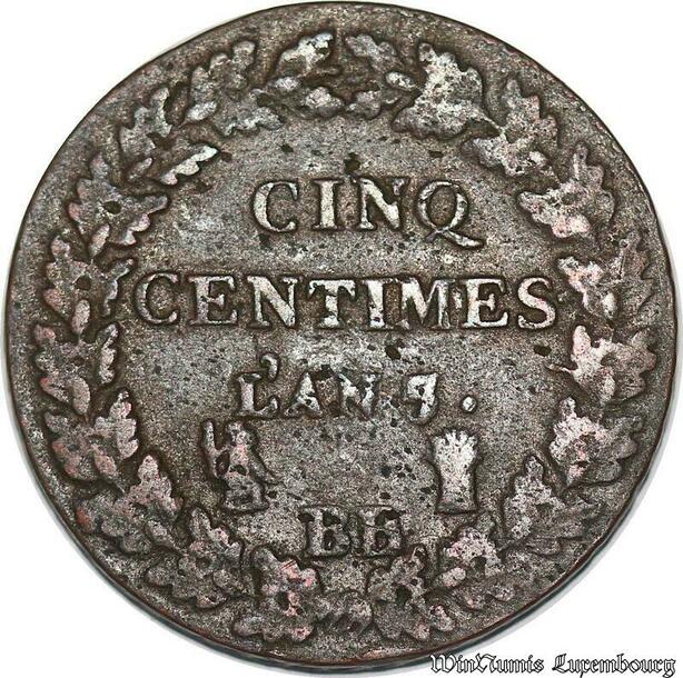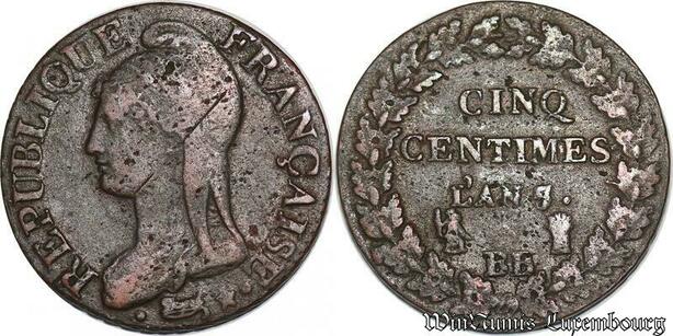 S5527 Rare France 5 Centimes Dupré An 7/5 BB - Faire Offre