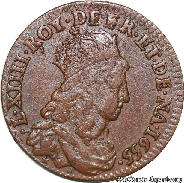 S7008 Louis XIV Liard au buste juvénile 1655 B Pont-de-l'Arche ->Faire Offre
