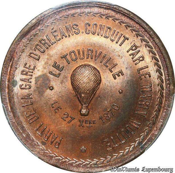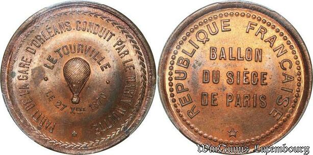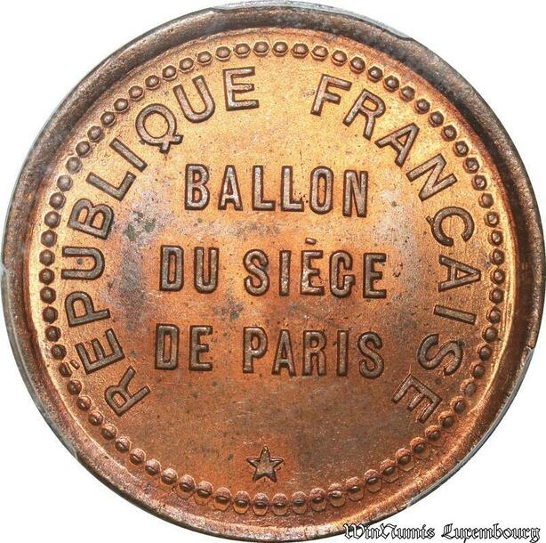 S7633 Finest 10 Centimes Balloon Essai Siège Paris TourVille 1870 PCGS MS64 GEM