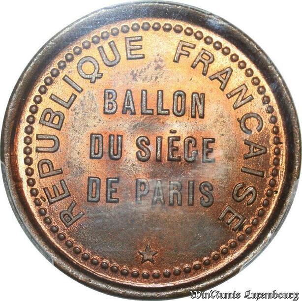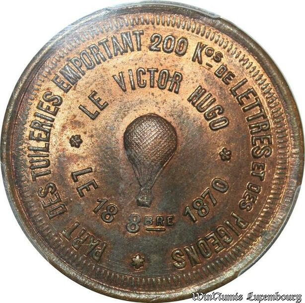 S7637 Finest 10 Centimes Balloon Essai Siège Paris Victor Hugo 1870 PCGS MS64