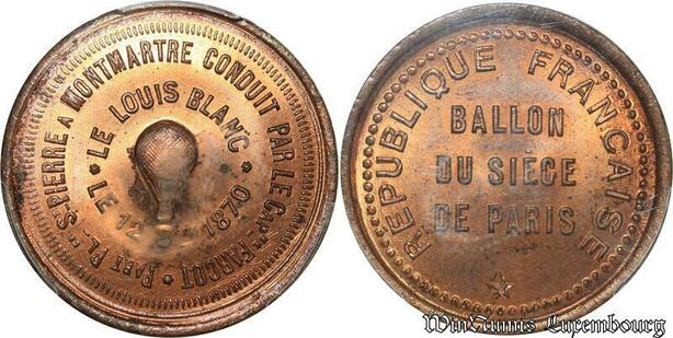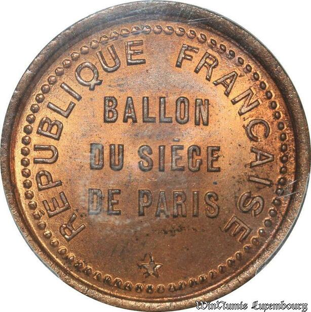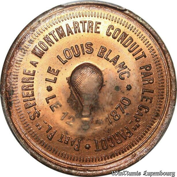 S7639 Finest 10 Centimes Balloon Essai Siège Paris Louis Blanc 1870 PCGS MS64