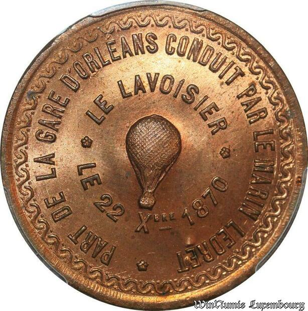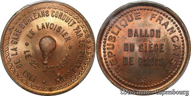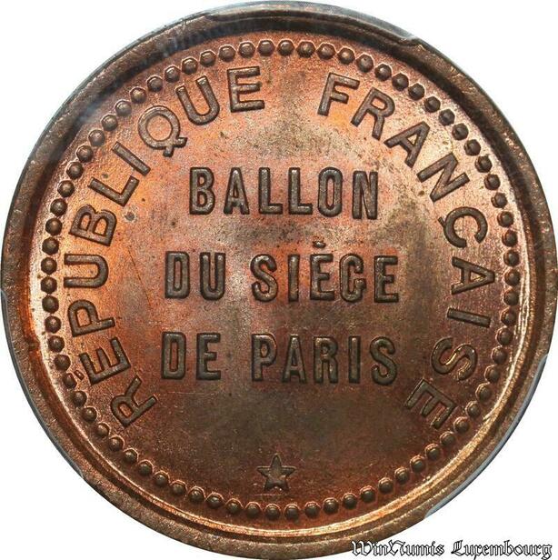 S7646 Finest 10 Centimes Balloon Essai Siège Paris Lavoisier 1870 PCGS MS65