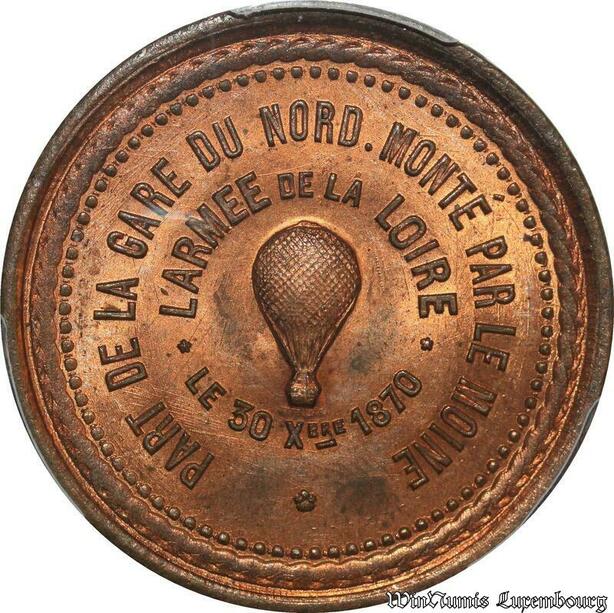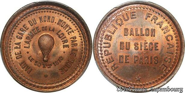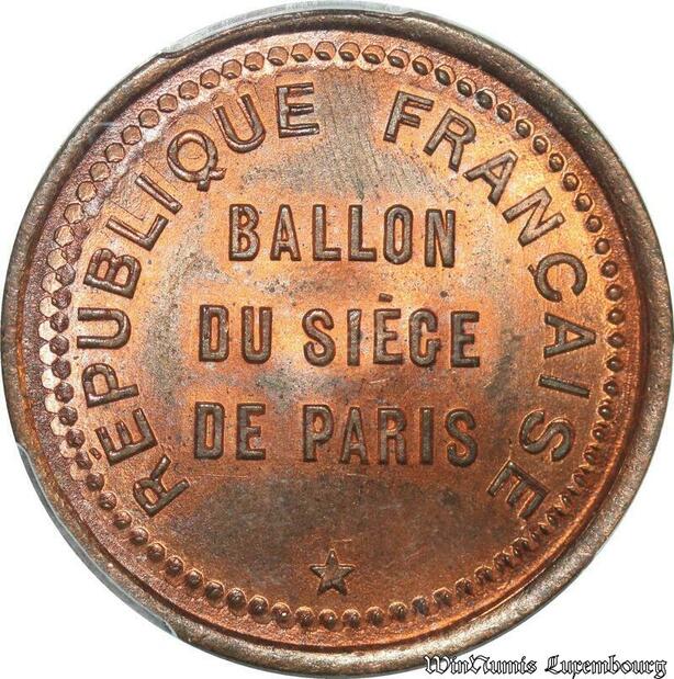 S7648 Finest 10 Centimes Balloon Essai Siège Paris Armée Loire 1870 PCGS MS65
