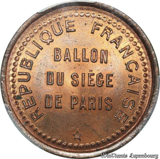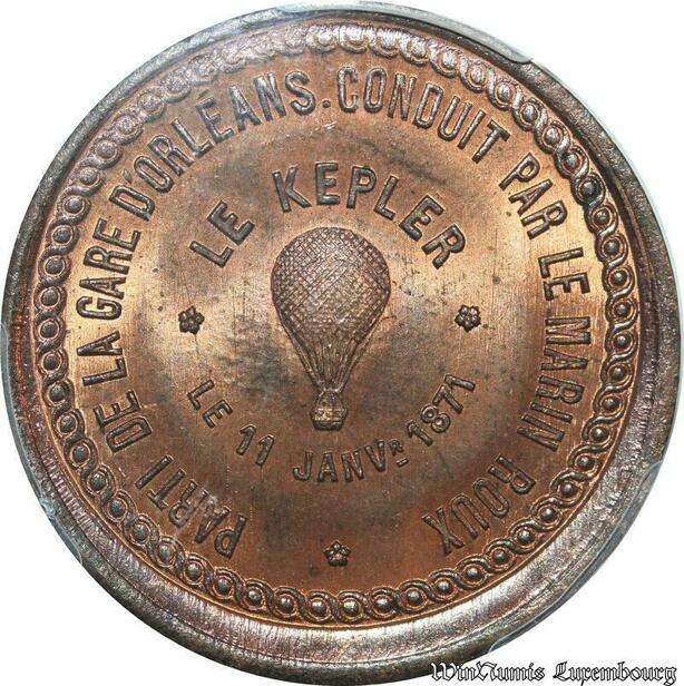 S7649 Finest 10 Centimes Balloon Essai Siège Paris Kepler 1870 PCGS MS66