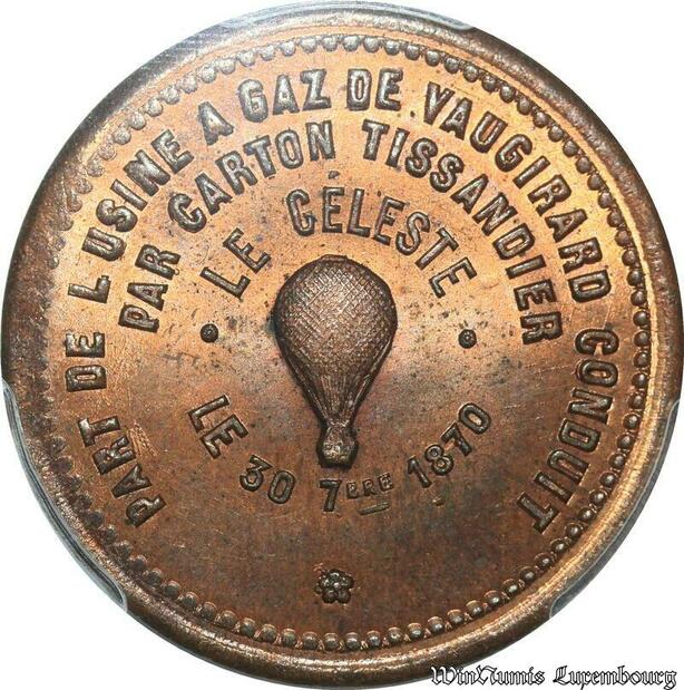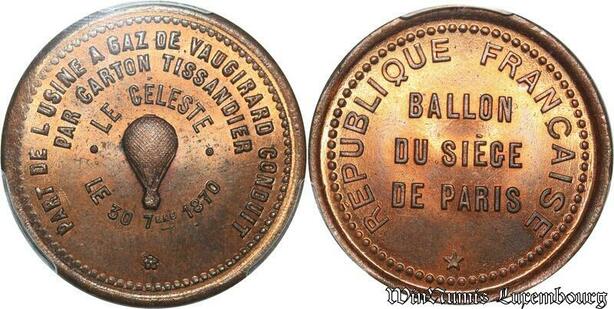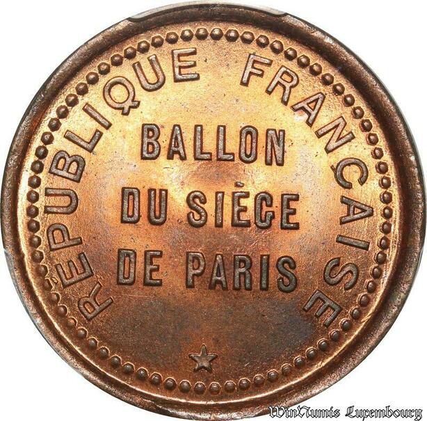 S7655 Finest 10 Centimes Balloon Essai Siège Paris Céleste 1870 PCGS MS65 GEM
