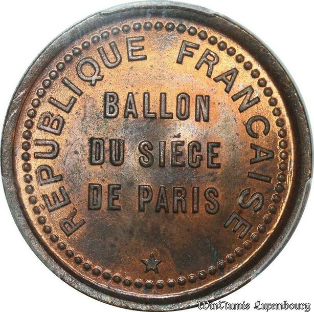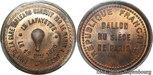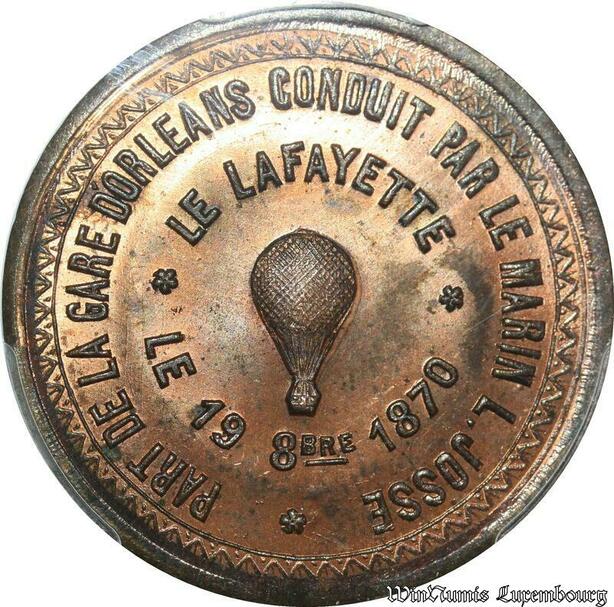 S7663 Finest 10 Cts Balloon Essai Siège Paris Lafayette 1870 PCGS MS64 GEM