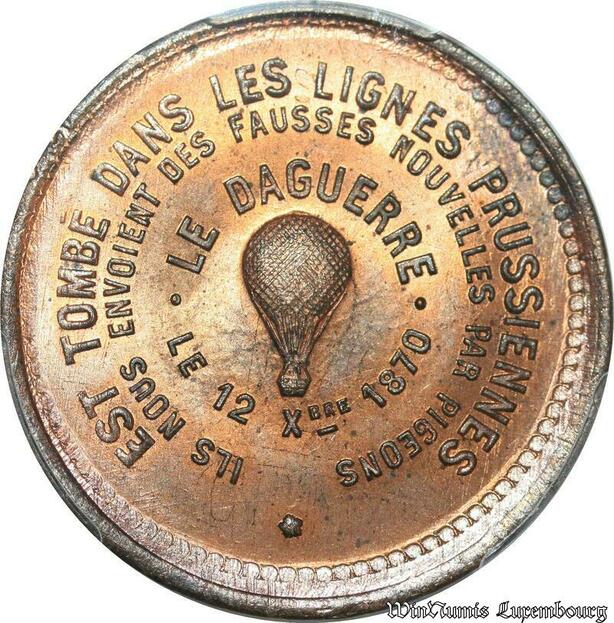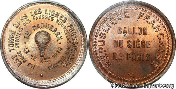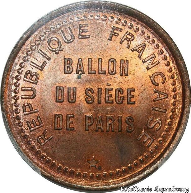 S7664 Finest 10 Centimes Balloon Essai Siège Paris Daguee 1870 PCGS MS65 GEM