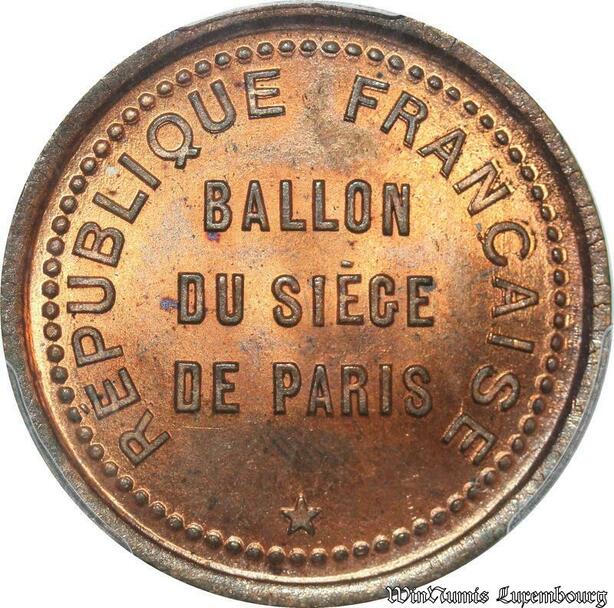 S7667 Finest 10 Cts Balloon Essai Siège Paris Washington 1870 PCGS MS65 GEM