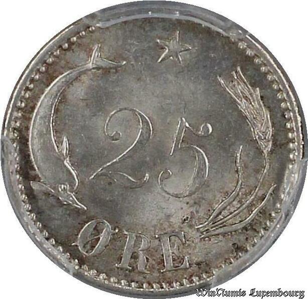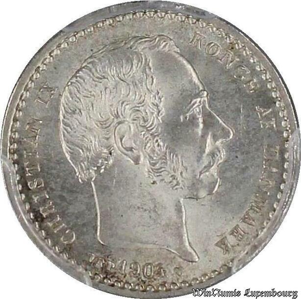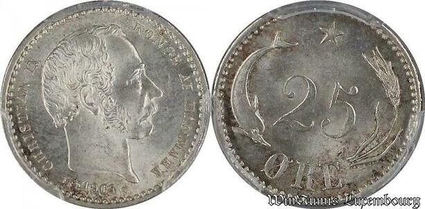 S7672 Danmark 25 Øre Christian IX 1904 PCGS MS64 VBP UNC ! ->Faire Offre
