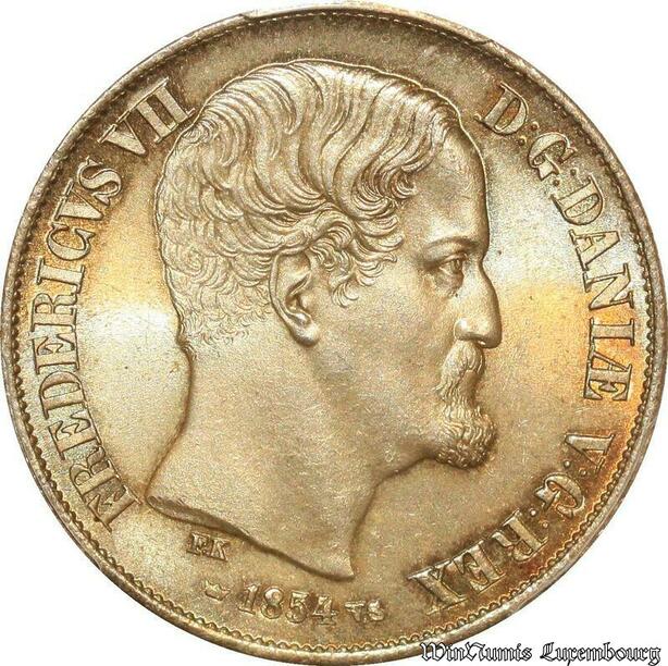 S7727 Finest Denmark 1 Rigsdaler Frederick VII 1854 PCGS MS65 Silver