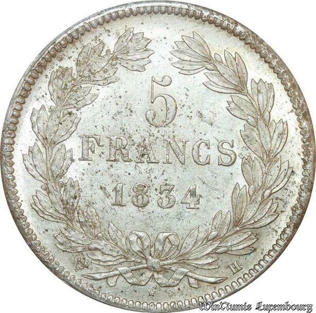 S7759 Rare 5 Francs Louis-Philippe 1834 La Rochelle PCGS MS62 Splendide
