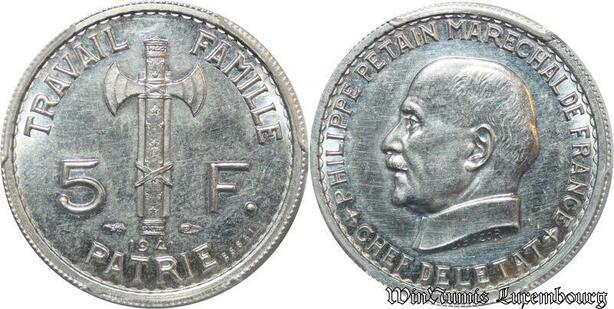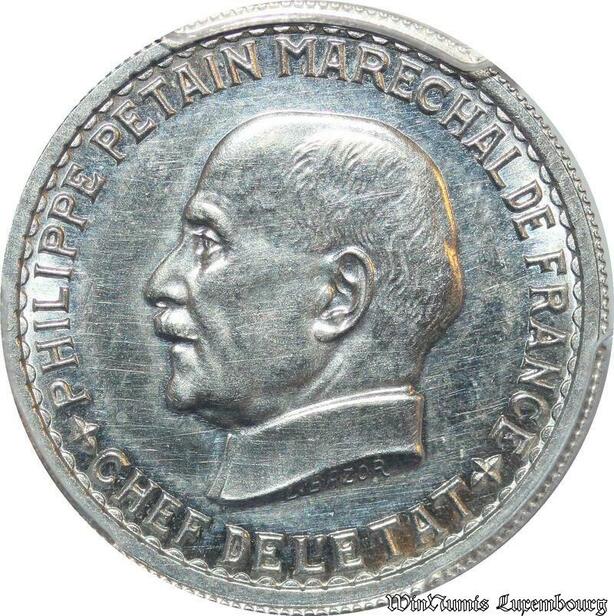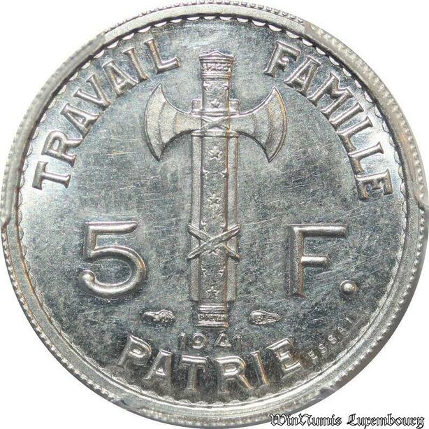 S7766 Rare 5 Francs Essai Petain 1941 PCGS SP62 Splendide Aluminium