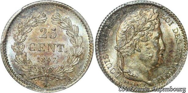 S7902 Finest25 Centimes Louis-Philippe I 1847 A Paris PCGS MS66 Argent Silver
