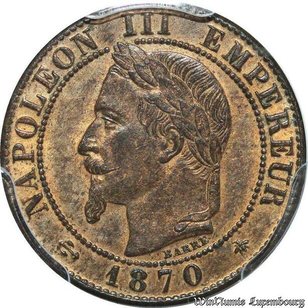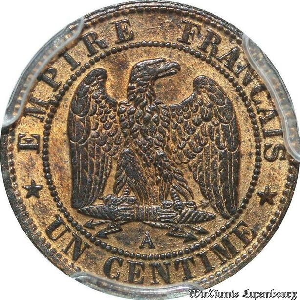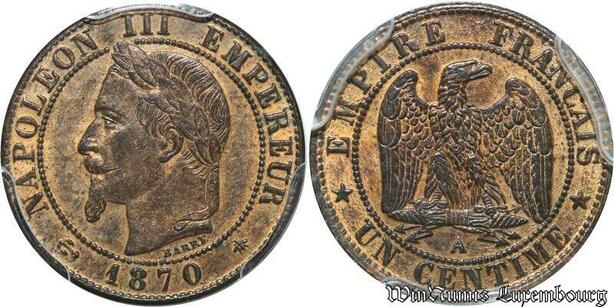 S7930 Rare 1 Centime Napoléon I 1870 A Paris PCGS MS63 RB -> Faire Offre