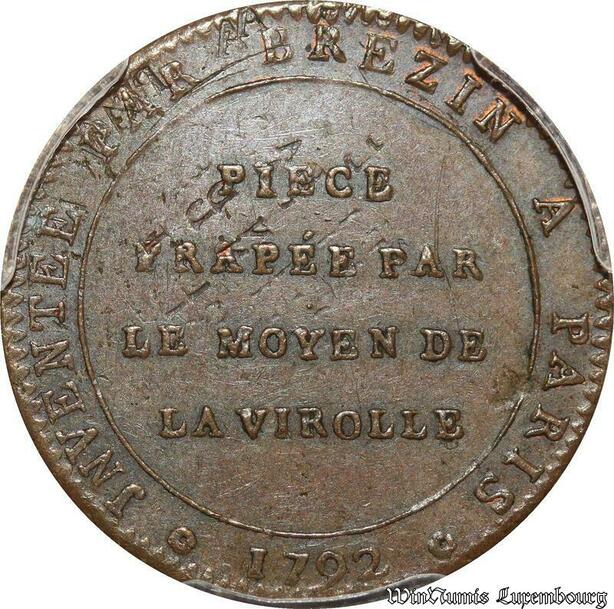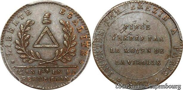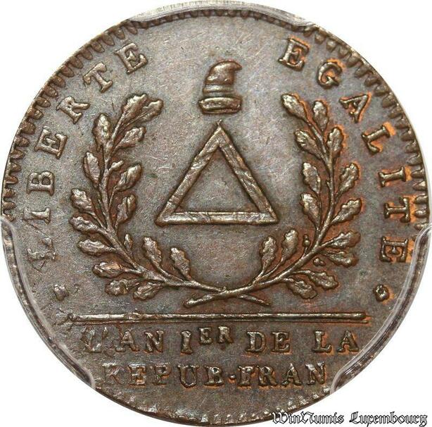 S7983 Rare ! Finest Constitution au triangle Brézin 1792 Paris PCGS SP55