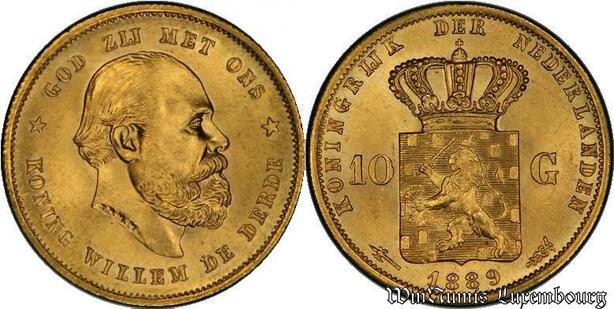 AA801 Netherlands 10 Gulden Willem III 1889 Diverses Years Or Gold 1st Choice