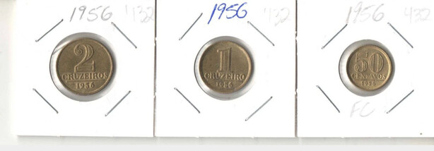 3 Coins 50 centavos 1 e 2 Cruzeiros 1956 Brazil EB432