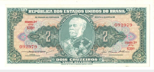Banknote Brazil 2 Cruzeiros 1956 - C063 / P-157Аb UNC Serial 639 N092979