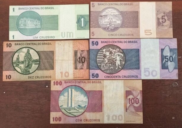 Lot 5 Brazil Banknotes Paper Money 1/5/10/50/100 Cruzeiros B17268044291