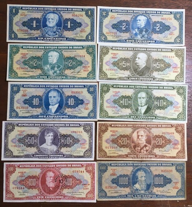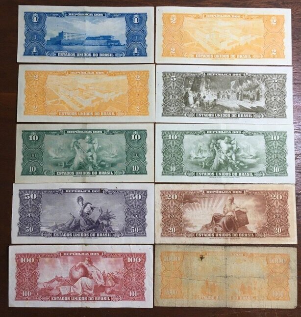 Lot 10 Paper Money Banknotes Brazil Old 054296