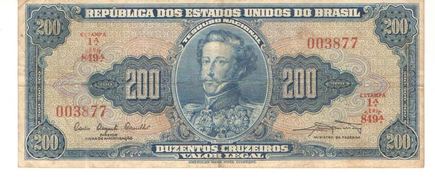 Brazil Paper Money Banknote 200 Cruzeiros C041 Serial 849 N003877