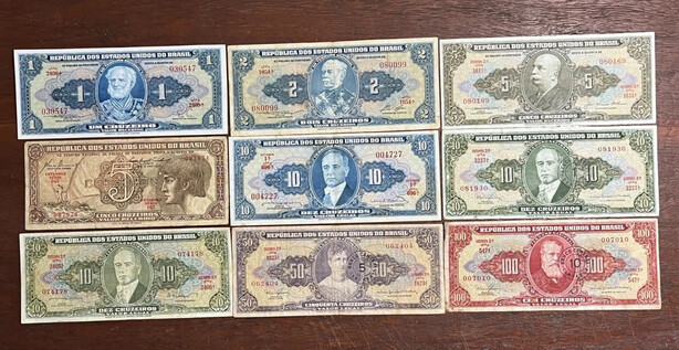 razil Lot 10 Paper Money Banknotes Brazil Old 030547
