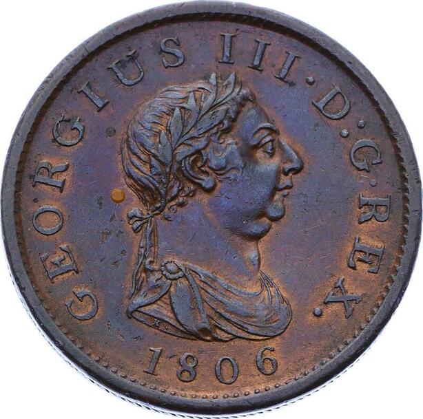 O2762 Very Rare !!! Great Britain Penny George III 1806 AU !! ->Make offer