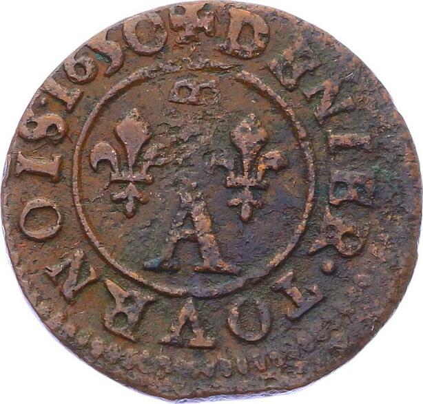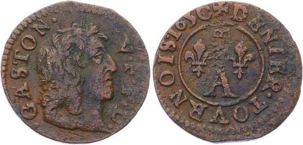 O2877 Dombes Denier Tournois Gaston d'Orléans 10e type 1650 Trévoux