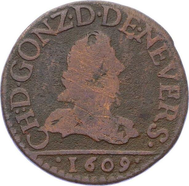 O2883 Rare Arches-Charleville Double Tournois Charles I OF Gonzague 1609