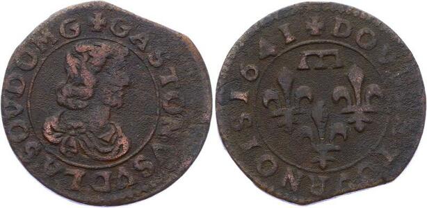 O2912 Rare Dombes Double Tournois Gaston d'Orléans 1641 Trévoux ->Make offer