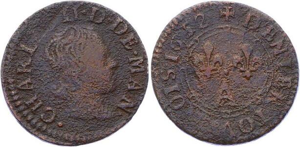 O2922 Rare Arches-Charleville Denier Tournois Charles II de Gonzague type 3