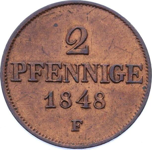 O2931 German States 2 Pfennige Sachsen Friedrich August II 1848 F AU Superbe