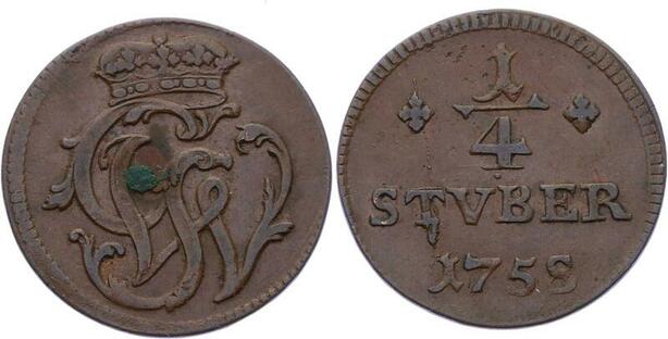 O2938 German States 1/4 Stüber Dierdorf Wied-Runkel Johann Ludwig Adolf 1758