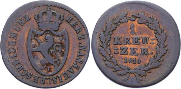 O2946 German States Nassau Friedrich August und Friedrich 1 Kreuzer 1810 L