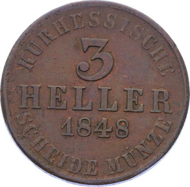 O2962 German States Hessen-Kassel 3 Heller Friedrich Wilhelm 1848 ->Make offer