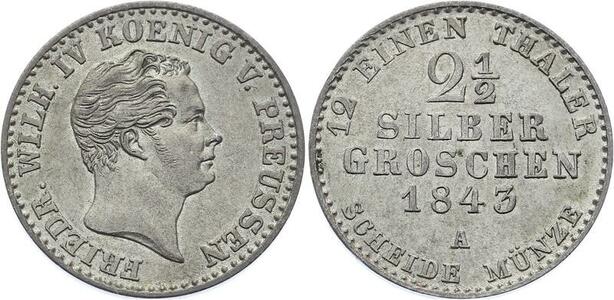 O2996 German States Prussia 2 1/2 Silber Groschen Friedrich Wilhelm IV 1843 A BU FDC->Make offer