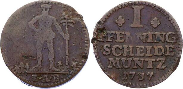 O3007 Germany Brunswick 1 Pfenning Karl I 1737 IAB KM# 901 ->Make offer