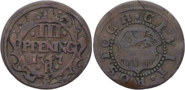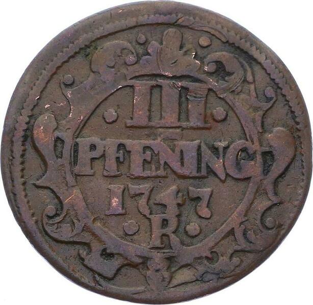 O3018 Germany Rostock 3 Pfennig 1747 KM# 116 ->Make offer