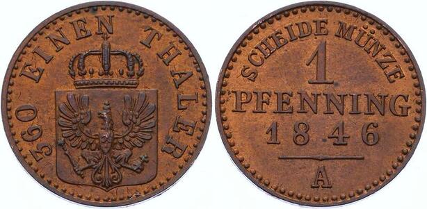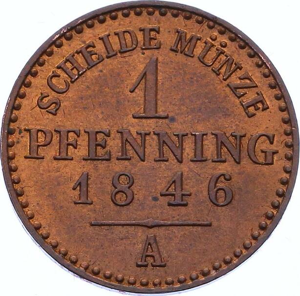 O3078 Germany Prussia 1 Pfenning Friedrich Wilhelm IV 1846 A KM# 451 BU